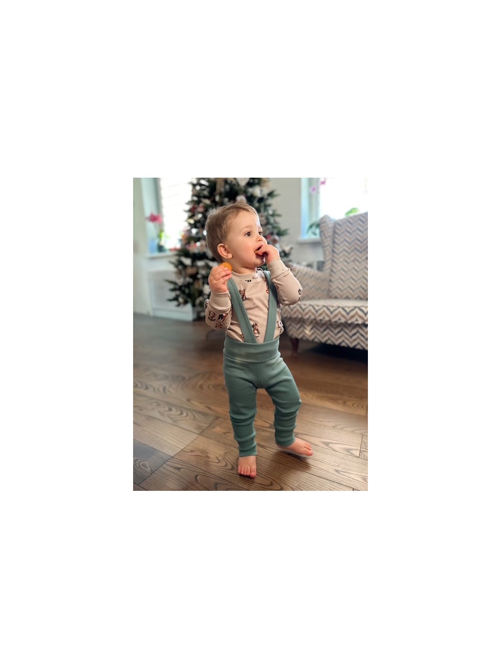 Tieto jedinečné rastúce retro legíny "trakogate" na traky sú vyrobené z mäkkého a pružného rebrovaného úpletu, ktorý sa dokonale prispôsobí postave dieťatka. Zaručujú maximálne pohodlie pri nosení. Vyšší elastický pás na bruško