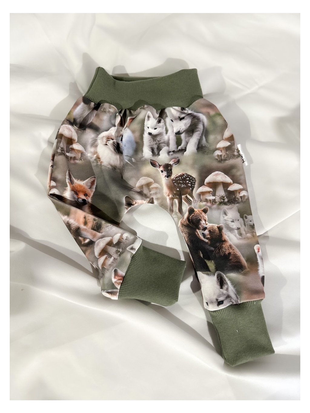 Tepláčky v pudlovom strihu s elastickým patentom v páse, ktorý netlačí na brušku ako guma, ale krásne sa prispôsobí každému drobcovi. Vďaka rastúcim patentom na nohách sú pudláče veľmi dlho nositeľné. Slow fashion kúsok vhodný pre deti s plienkami.